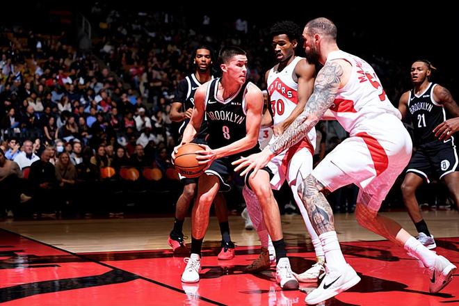 在季前賽最后一戰(zhàn)布魯克林籃網(wǎng)對(duì)陣多倫多猛龍的比賽中,籃網(wǎng)的后場(chǎng)新秀葉格爾-杰明(Egor Demin)完成了自己在季前賽中的首秀。杰明在18分47秒的出場(chǎng)時(shí)間內(nèi)投籃4中3,三分線外3中2,罰球7中6,得到了14分5籃板1助攻1蓋帽的數(shù)據(jù),還有2次失誤和1次犯規(guī)。雖然籃網(wǎng)輸?shù)袅吮荣?,但是杰明的表現(xiàn)令人眼前一亮,他的得分能力看起來(lái)相當(dāng)不錯(cuò),他在外線投籃方面的表現(xiàn)更是遠(yuǎn)超大家的預(yù)期,而且他在防守端也能夠提供一定的幫助。至少在這場(chǎng)比賽中,他的整體表現(xiàn)是頗具亮點(diǎn)的,也算得上超出大家預(yù)期的。