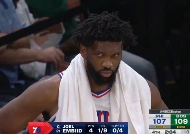 至于恩比德,復(fù)出首秀9中1得到4分6板