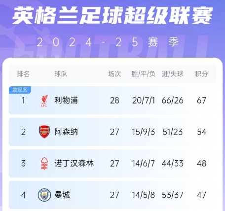 英超聯(lián)賽:阿森納暫列第二,落后榜首利物浦13分